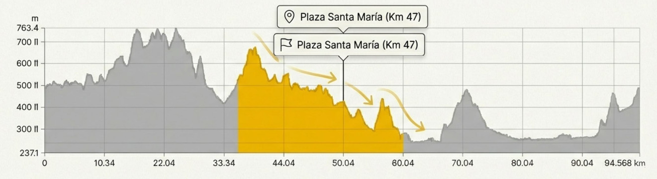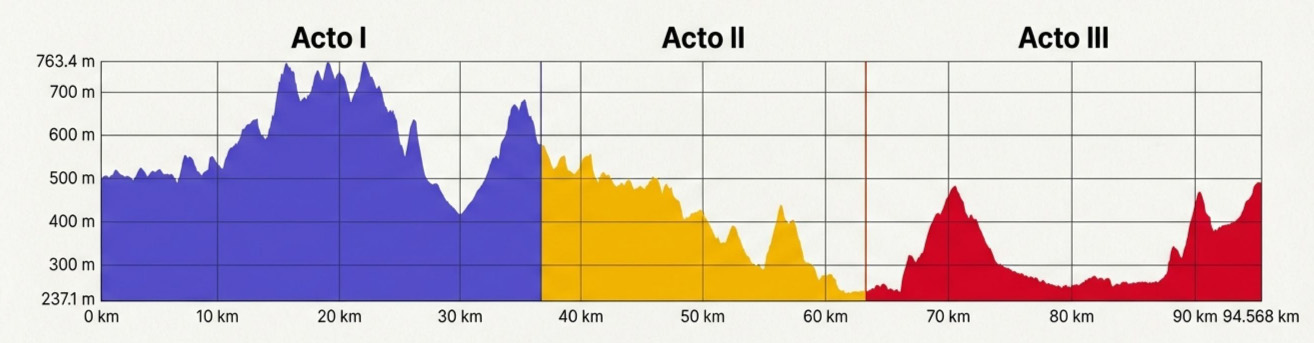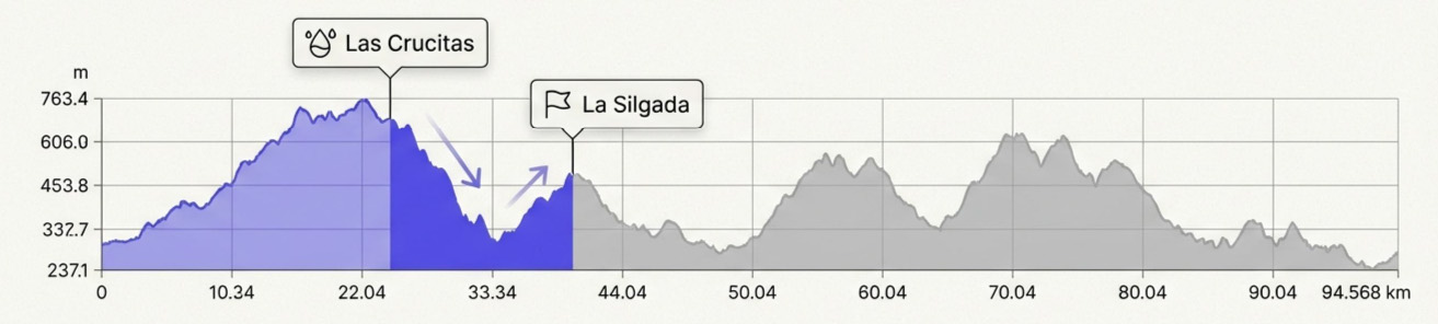 Clave táctica: La carrera no se gana aquí, pero si se puede perder. La gestión del esfuerzo es fundamental. Un ritmo conservador es obligatorio para preservar energía para los 72 km restantes.